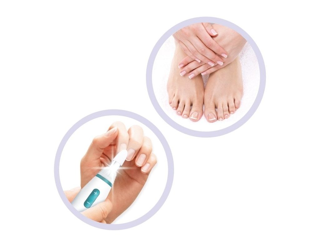 Domáca manikúra a pedikúra vám dodá radosť z možnosti postarať sa o svoje telo v domácom prostredí. Frézka je vybavená hrotmi s rôznymi tvarovými hlavami a leštič pomáha dosiahnuť vysoký lesk nechtu. Pohodlné vo forme schopnosti nastaviť smer a rýchlosť otáčania špičky z veľmi pomalého na veľmi rýchly.