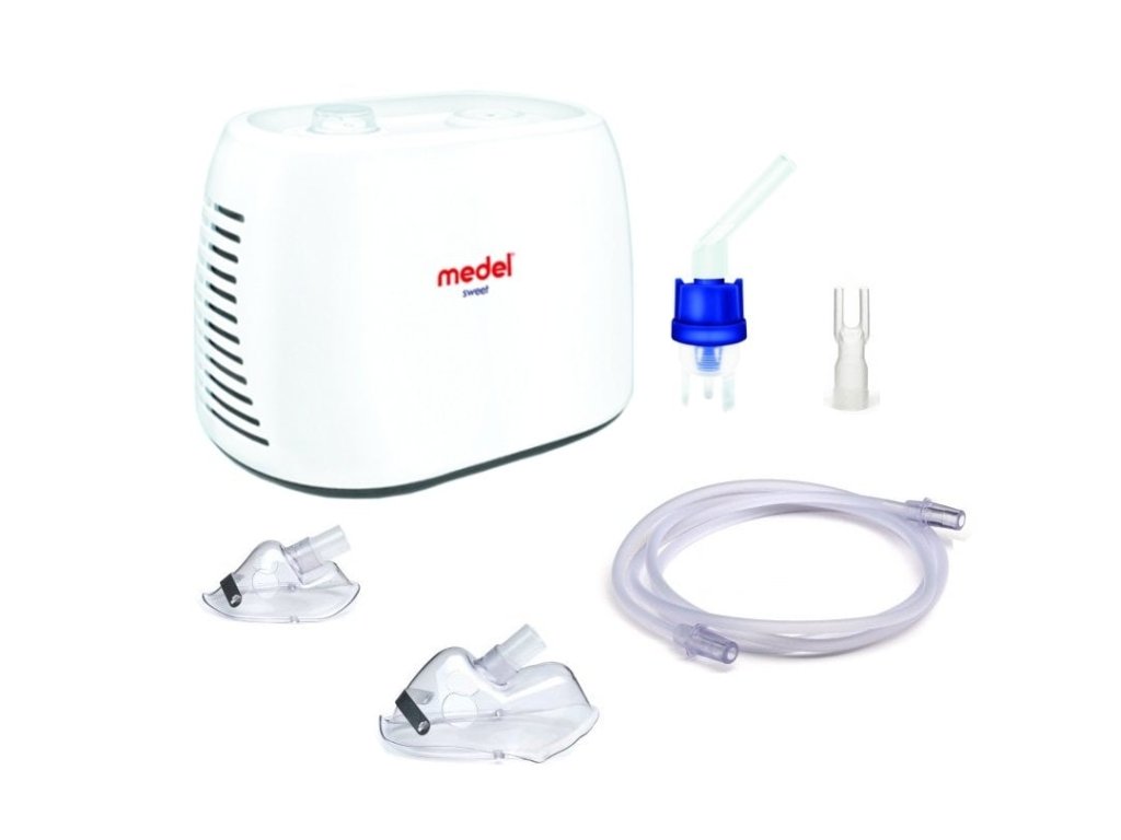 Inhalátor Medel Sweet má kompaktný dizajn, ultra nízky kompresor a súpravu príslušenstva potrebného na inhaláciu. Rozprašovač Medel Jet Basic (Evo) je pripojený mimo inhalátora, čím sa vyhnete potrebe otvorenia a zatvorenia zariadenia.