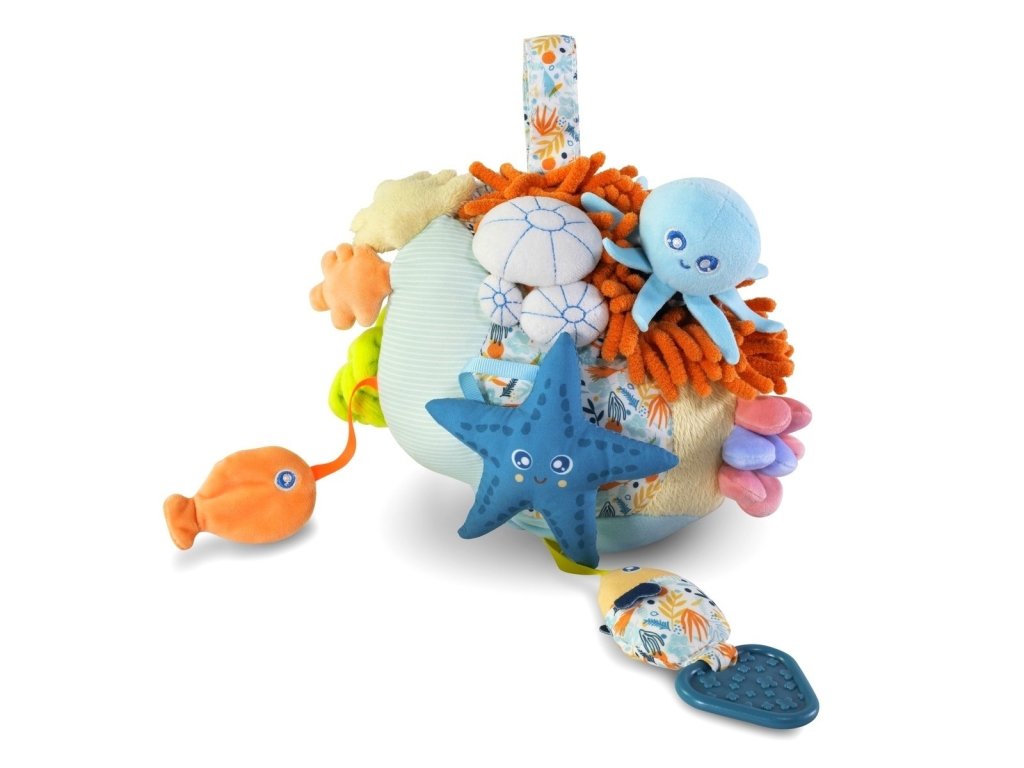 Senzorická stimulácia je jednou z najdôležitejších a najlepších vecí pre vaše dieťa. Bude sa skvele baviť pri pohľade, dotyku, hryzení alebo počúvaní hrkajúcich zvukov tohto mäkkého koralového útesu. Zatrasením hrkálky v tvare chobotnice môžete začať odhaľovať tajomstvá útesu. Nechajte svoje dieťa objavovať tajomstvá oceánskych hlbín už od útleho veku!
