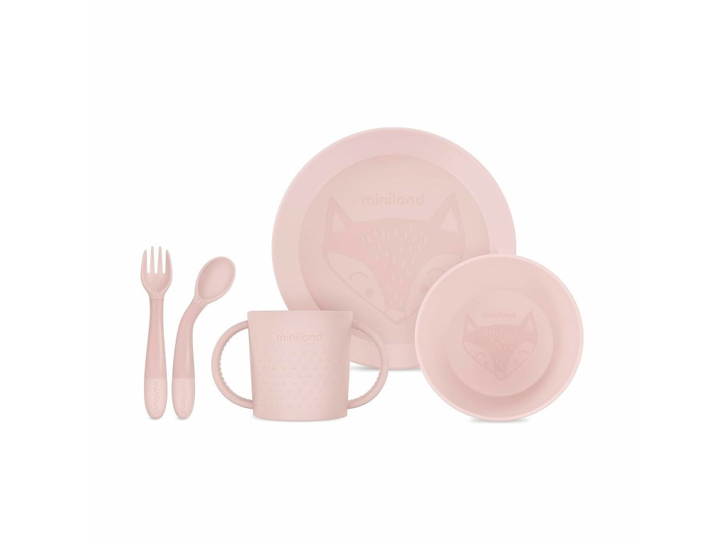 Miniland Dolce 5-dielny set na jedenie pre deti, okrúhly, ružový