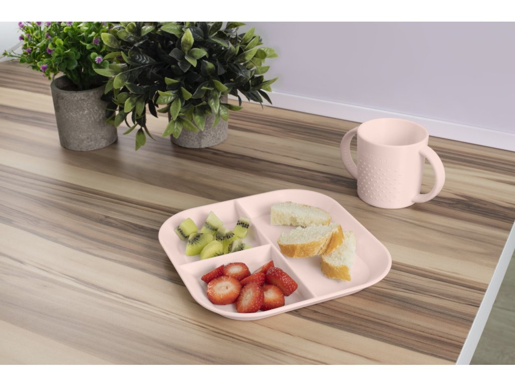 Tanier s priehradkami: Umožňuje podávať tri rôzne jedlá, čo dieťaťu dáva možnosť voľby a pomáha mu objavovať rôzne chute a textúry.