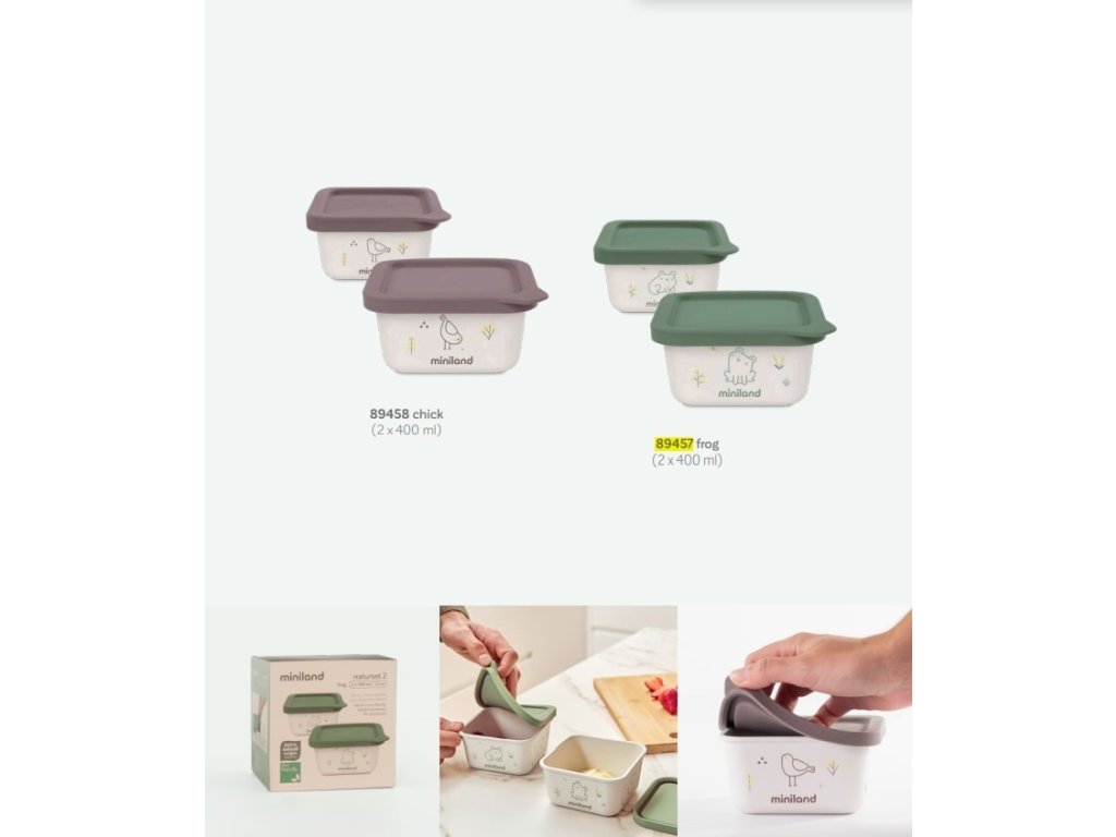Miniland ECO-friendly Hermetické nádoby na uloženie jedla, 2x400 ml, Žabka