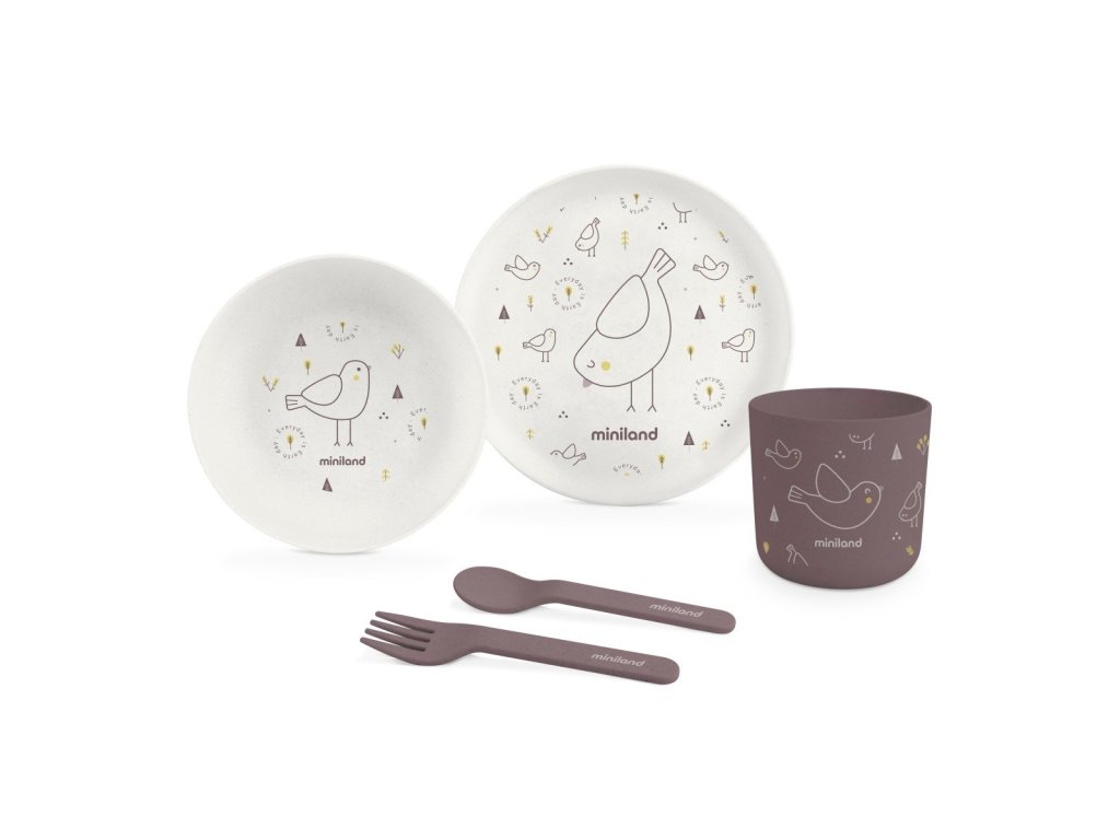 Miniland ECO-friendly Jedálenský set pre dieťa, 5-dielny, Vtáčik
