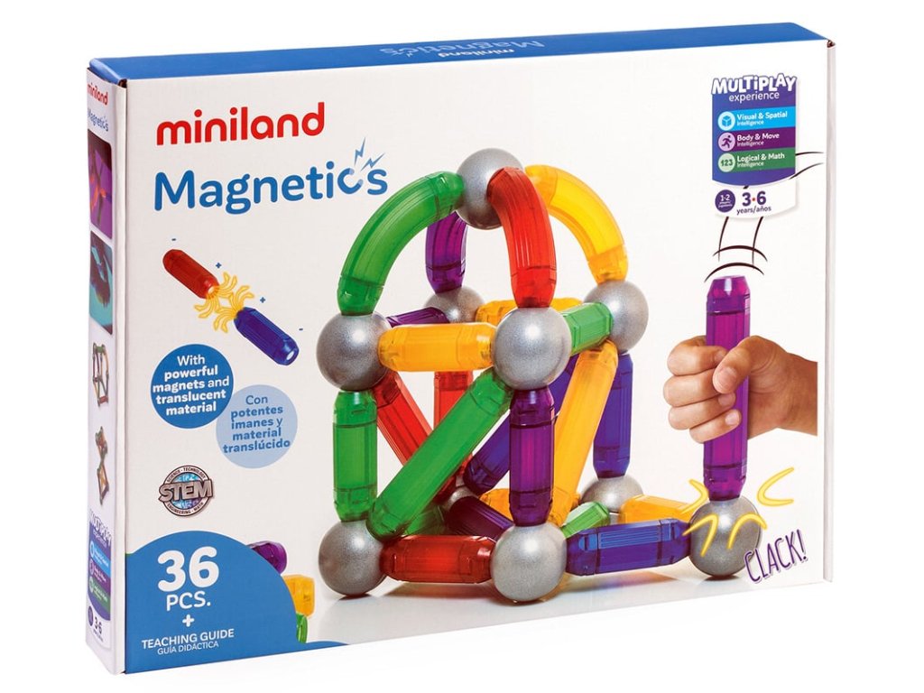 Miniland Magnetics, Magnetická stavebnica, sada s 36 časťami, 3-6 rokov,