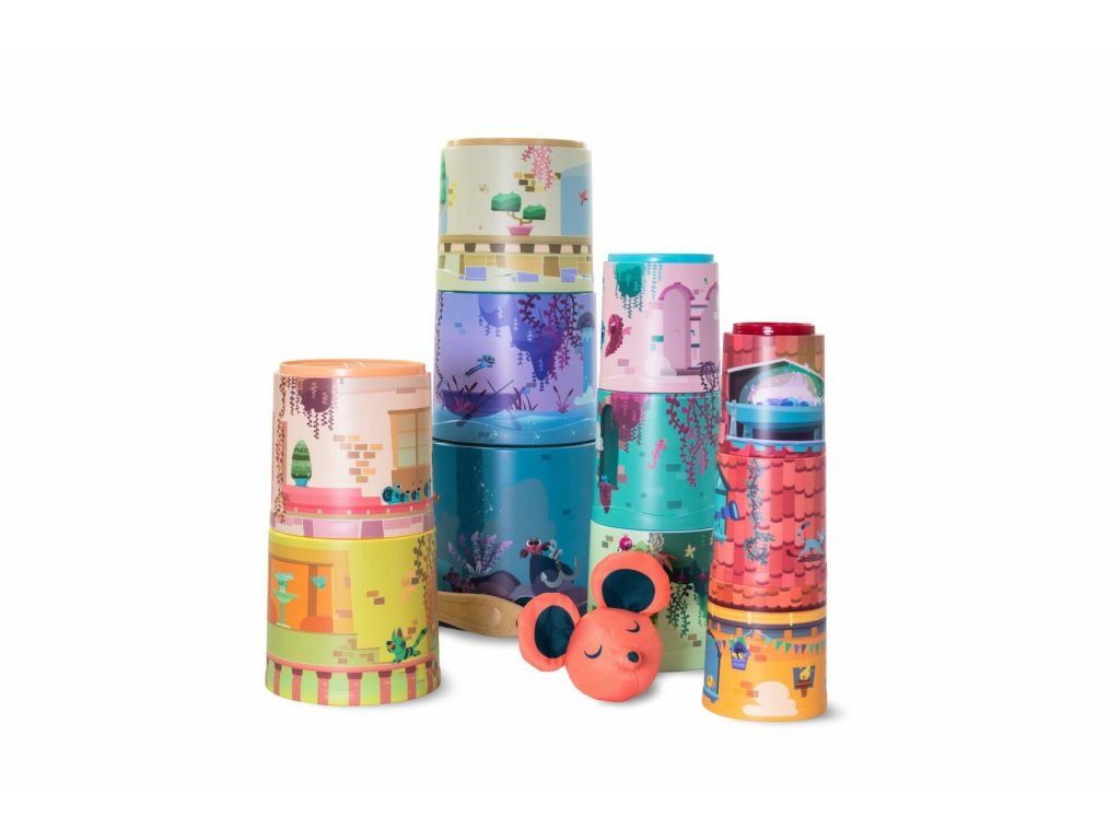 Batoľatá budú môcť vymyslieť toľko príbehov, koľko si len dokážu predstaviť, a to tak, že schovajú malú myš medzi bloky alebo ju hodia, aby zbúrali vežu.