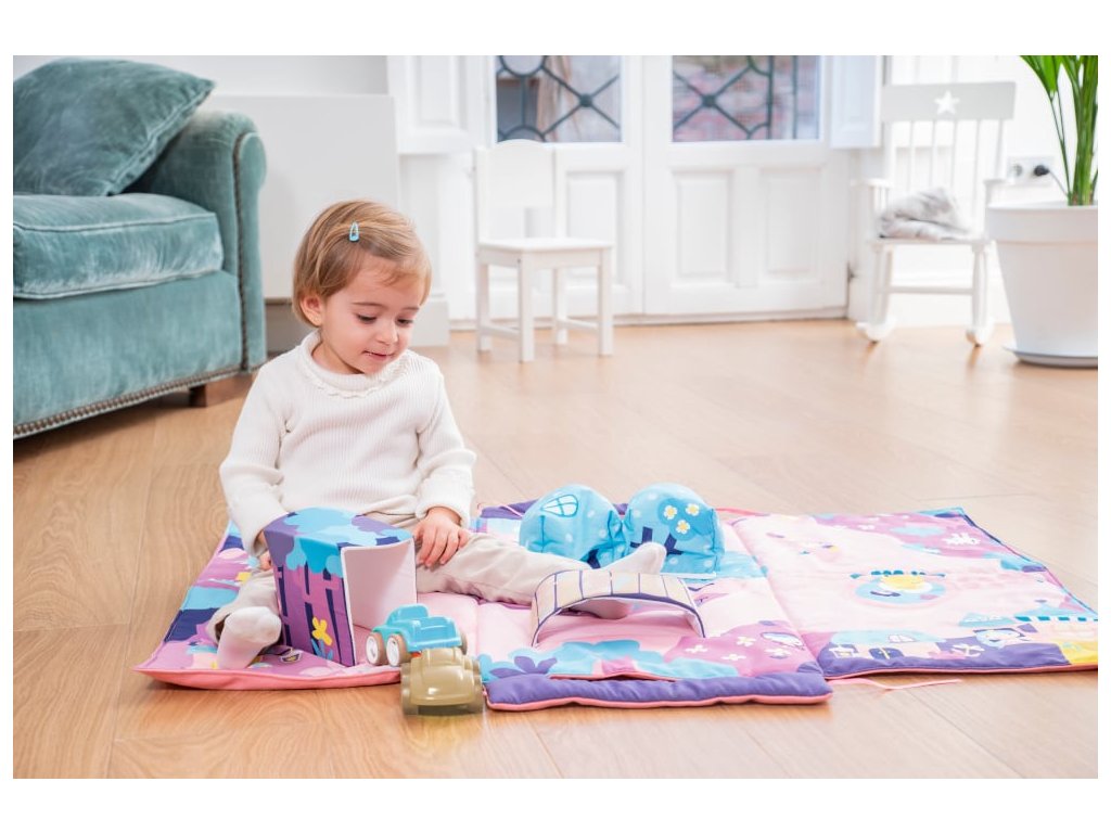 S touto mäkkou podložkou môže dieťa stráviť hodiny plné dobrodružstiev vo svete víl. Podložka pomôže rozvíjať zmysly a predstavivosť vášho dieťaťa tým, že ponúka množstvo zmyslových prvkov, ako sú šuštiace prvky, most, tunel, cesty a vrecká na autá.