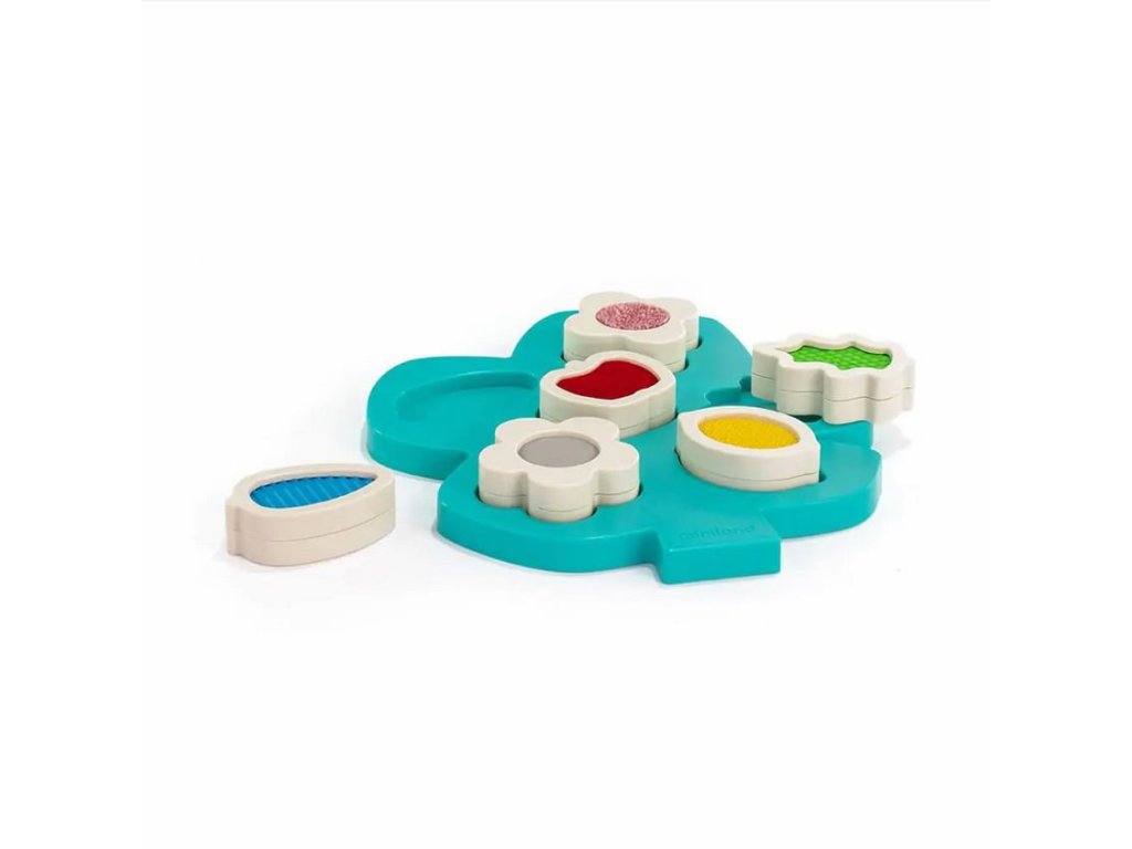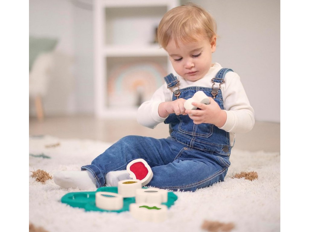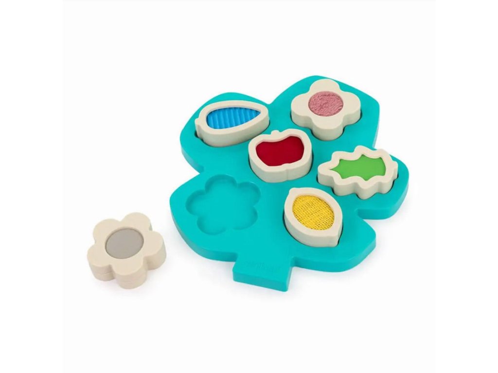 Senzorická skladačka Strom obsahuje 6 dielikov s rôznymi textúrami a kontrastnými farbami v tvare listov, plodov a kvetov. Tieto dieliky slúžia na hmatovú a vizuálnu stimuláciu.