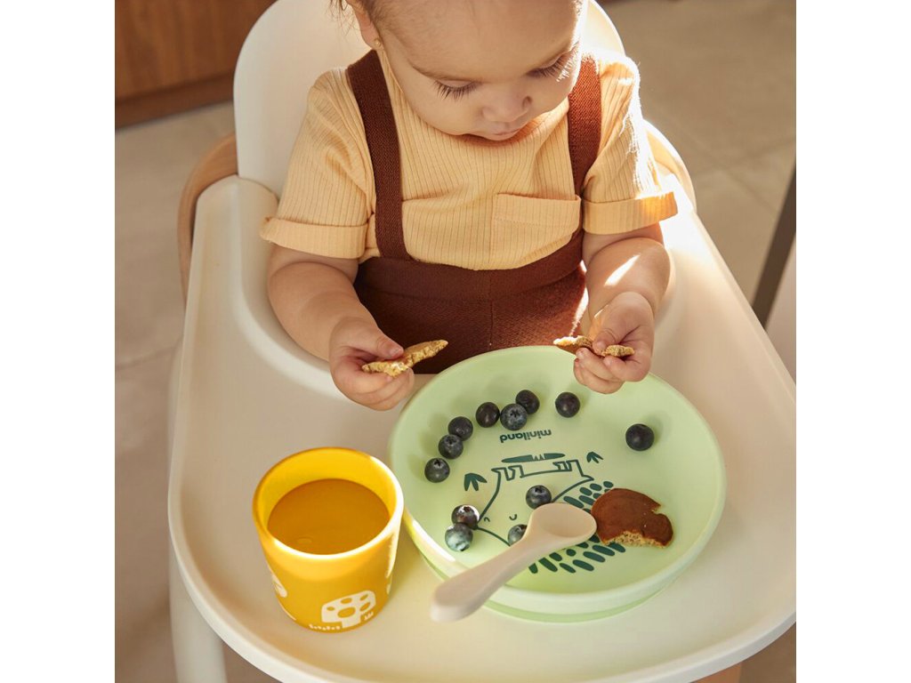 Súprava je ideálna pre deti, ktoré začínajú s príkrmami. Je vyrobená z polypropylénu a potravinárskeho silikónu, ktoré sú bez BPA, a zaisťujú tak bezpečnosť dieťaťa. Jednoduchá údržba je zaručená – celú súpravu je možné bezpečne umývať v umývačke riadu a používať v mikrovlnnej rúre.