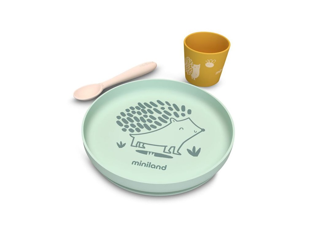 Miniland Set na jedenie Jež je navrhnutý pre malé deti, ktoré sa učia samostatne jesť. Táto súprava, vyrobená z kvalitných a odolných materiálov v Španielsku, poskytuje komfort a bezpečnosť pri každom jedle. Roztomilý motív ježka na tanieriku a hrnčeku robí z učenia sa jesť zábavu.