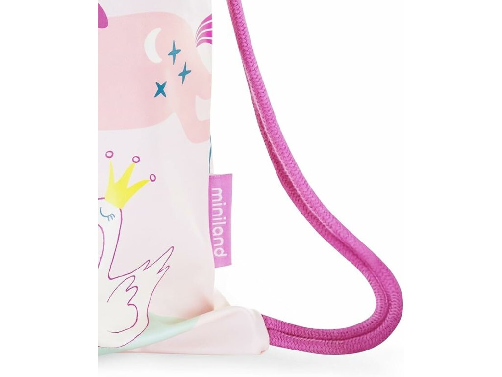 Športový batoh Miniland s veselým motívom jednorožca je ideálnym a praktickým doplnkom pre každé dieťa. Vďaka svojmu jedinečnému dizajnu, ktorý kombinuje funkčnosť tašky so sťahovacími šnúrkami a ľahkého batoha, sa stane obľúbeným spoločníkom na každodenné nosenie do škôlky, na výlety alebo na krúžky.