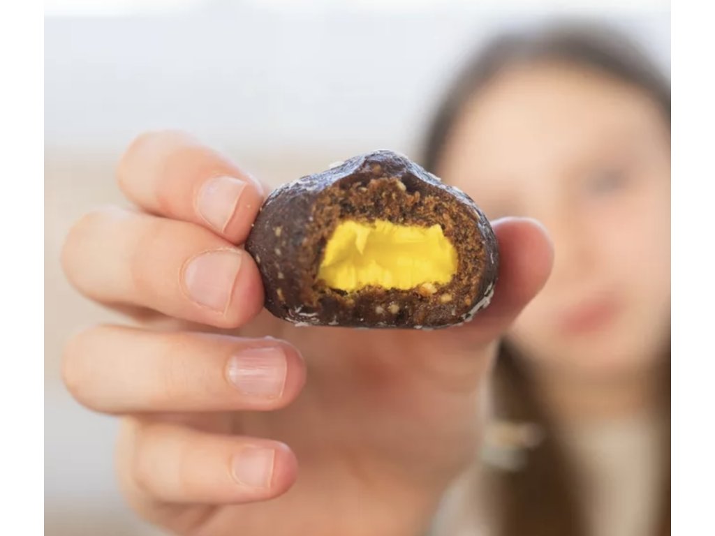 Milovníci boulí, pozor! Naša nová limitovaná Crème boule s príchuťou vaječného likéru spája sladké datle, jemný kokos a kešu múku s typicky vianočným korením – škoricou, klinčekmi a badiánom. Vo vnútri každej gule na vás čaká zamatovo jemný krém, ktorý vonia po sviatkoch a chutí tak dobre, že si ho zamilujú aj tí, čo bežne „vaječňáku“ neholdujú.