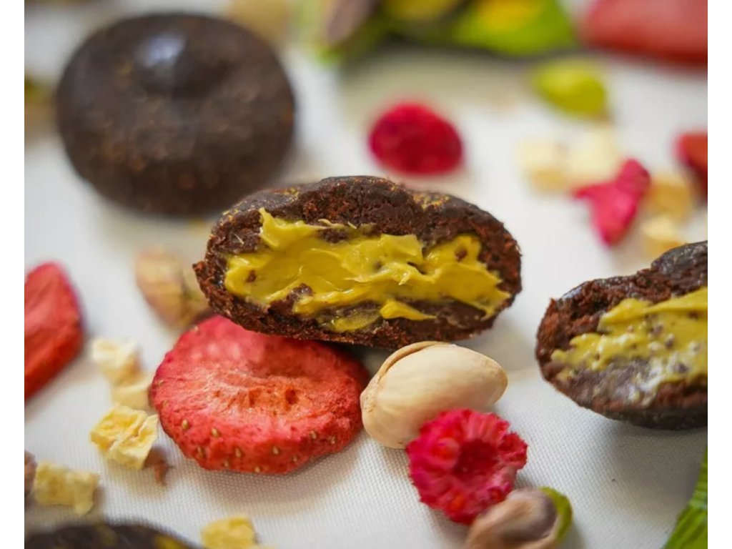 O Sole Mio, Pistachio Mio! Máte zelenú na degustáciu našej novej Crème boule - Pistachio Mio! Krémové gule sú talianskou ódou na jedinečné spojenie sladkých datlí, kvalitného kakaa Single Origin z Peru a delikátnych pistácií. Vo vnútri každej gule objavíte zamatový krém z pistácií, ktorý je zahalený v lahodnej vrstve datlí.