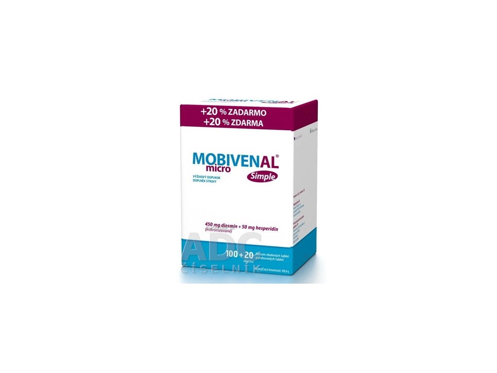 Hlavnými zložkami výživového doplnku MOBIVENAL® micro Simple sú mikronizovaný diosmin s hesperidínom. Viac o produkte na adc.sk