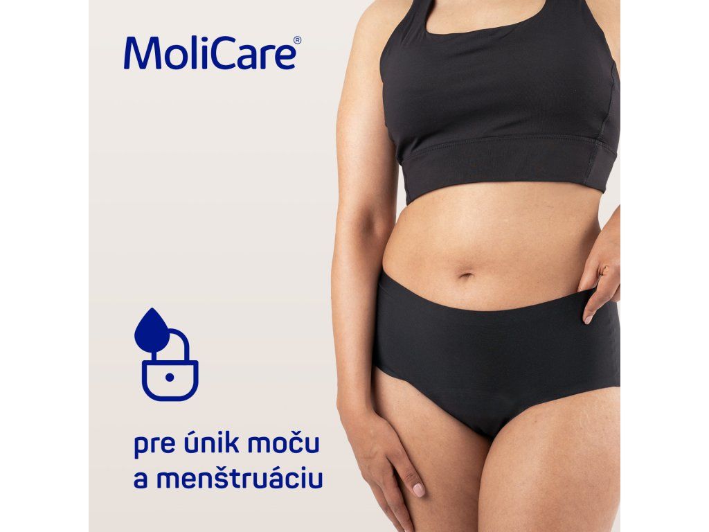 Vďaka designu na mieru ženskému telu je dámska spodná absorpčná bielizeň MoliCare určená pre ženy, ktoré trpia ľahkou inkontinenciou a hľadajú neviditeľné a udržateľné riešenie. Naviac sa hodia aj ako menštruačné nohavičky, pretože pojmú toľko tekutiny ako 4 bežné menštruačné tampóny.