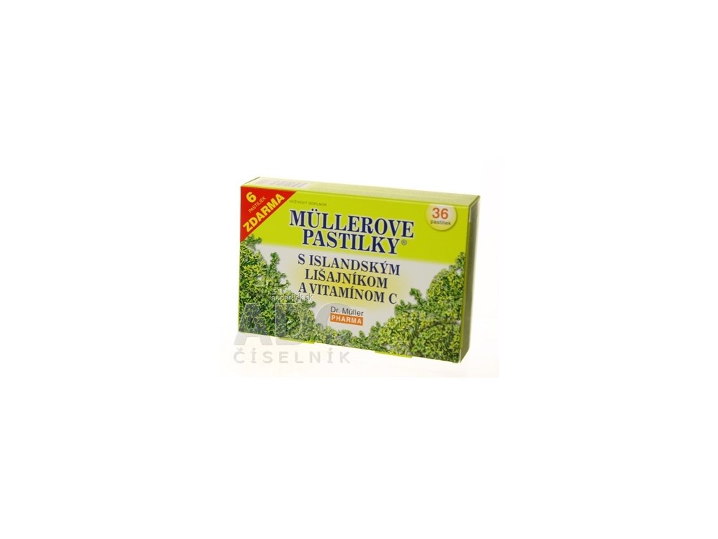 MÜLLEROVE PASTILKY S ISLAND. LIŠAJNÍKOM A VIT. C (na odkašliavanie) 30+6 zadarmo (36 ks)