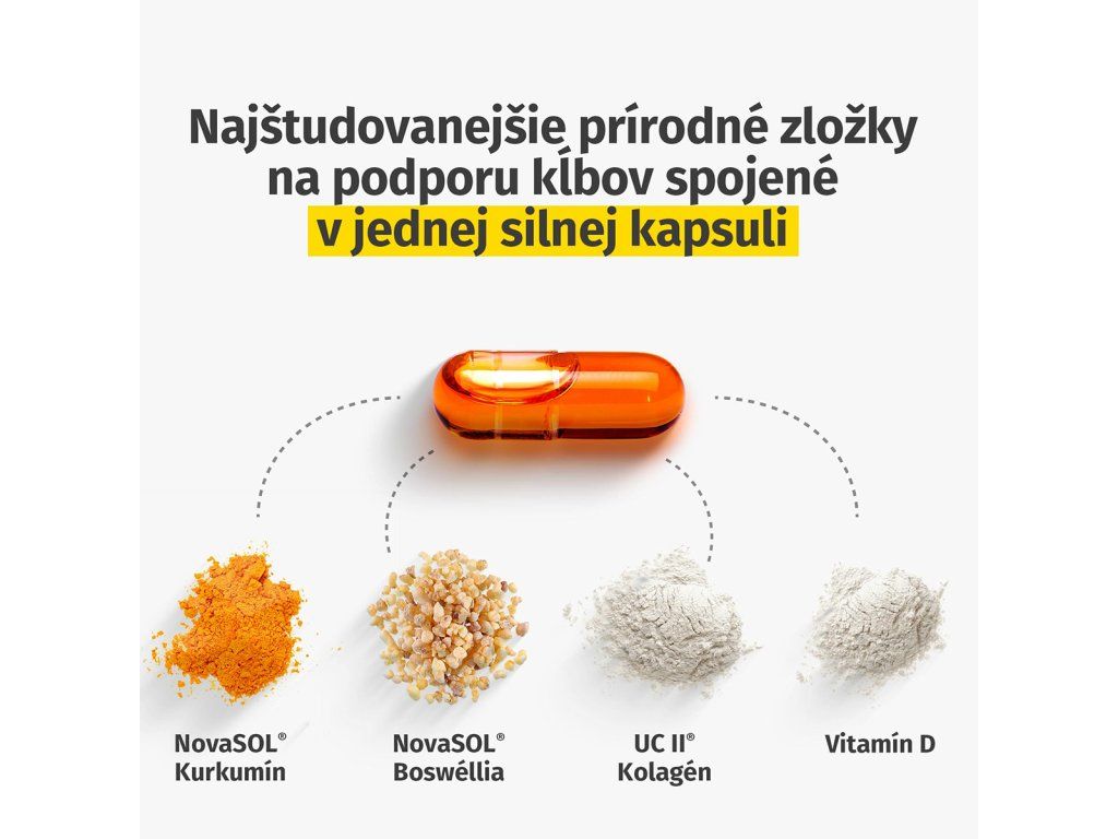 Výživový doplnok s výťažkami boswellie a kurkumy, kolagénom a vitamínom D.