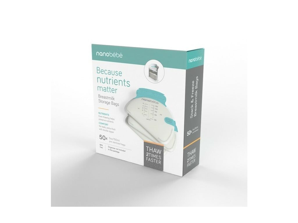 Vrecká sú určené na uchovávanie mlieka v plytkej vrstve – teda rýchlo ochladzujú a rozmrazujú, obmedzujú rast baktérií a zachovávajú živiny. Vrecúška na materské mlieko Nanobébé sú odolné, nepriepustné, vyrobené z pevného plastu bezpečného pre potraviny a majú pevný dvojitý zips.