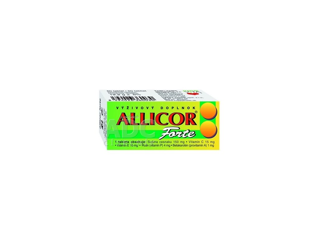 Cesnaková sušina obsiahnutá vo výrobku je pripravená spôsobom, ktorý zaistí maximum pôvodných látok čerstvého cesnaku. Účinné látky obsiahnuté v surovom cesnaku sa strácajú počas kuchynských úprav, najmä pri varení. Tablety ALLICORU FORTE sú potiahnuté jemným filmom, ktorý odoláva žalúdočnému prostrediu a umožňuje uvoľňovanie účinných látok až v tenkom čreve. Tým je chránená citlivá žalúdočná sliznica, obmedzuje sa cesnakový pach vydychovaného vzduchu.