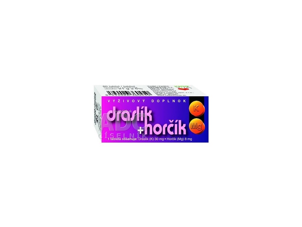 Výživový doplnok s obsahom minerálnych látok - draslíka a horčíka.