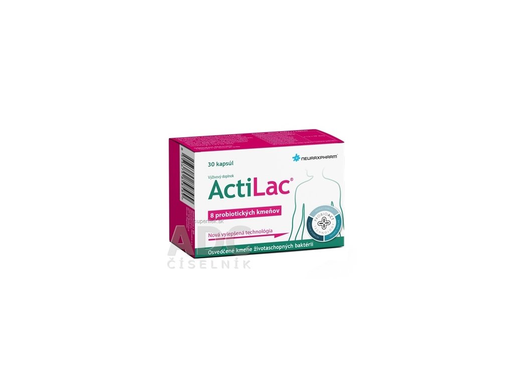 Kapsuly prípravku ActiLac sú vyrobené novou generáciou technológie Probioact vrátaNe špeciálnej nosnej matrice "Turbo", čím dochádza k zlepšeniu metabolickej aktivity, ochrany baktérií a k stabilite celého prípravku. ActiLac obsahuje kombináciu 8 probiotických kmeňov, ktorých celkové množstvo je ≥ 1,0 x 109 cfu/g.