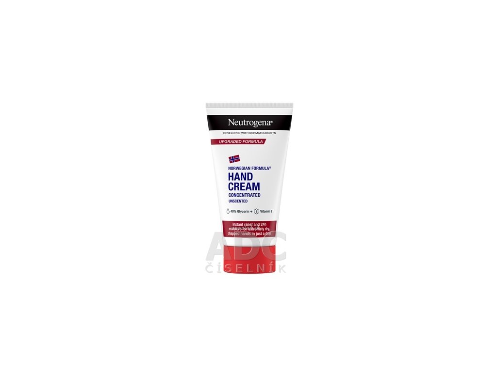 NEUTROGENA Nórska receptúra. Koncentrovaný krém na ruky neparfumovaný. Kvapka nášho koncentrovaného krému s 40% glycerínom a s vitamínom E okamžite upokojuje a regeneruje suché ruky, poskytuje im 24-hodinovú hydratáciu a chráni kožnú bariéru – vedecky potvrdené. Vhodný aj na citlivú pokožku.