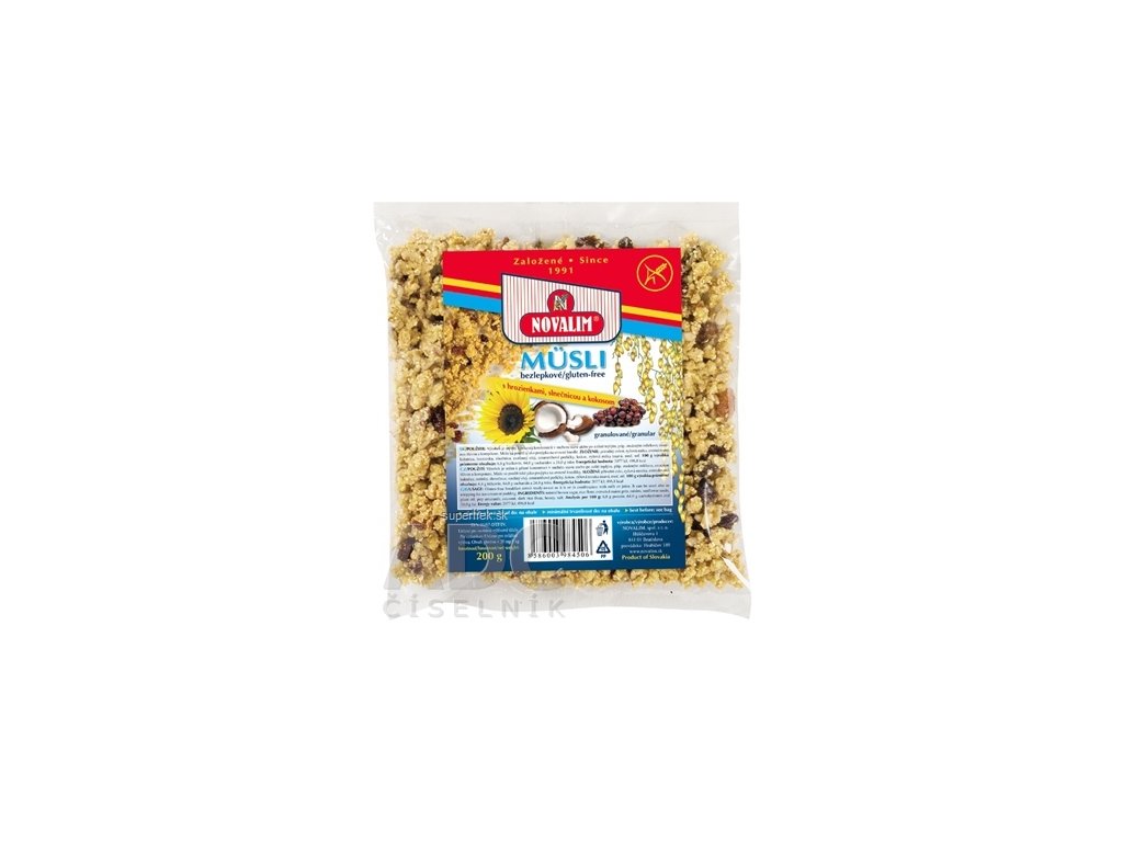 NOVALIM MÜSLI BEZLEPKOVE GRANULOVANÉ s hrozienkami, slnečnicou a kokosom 1x200 g