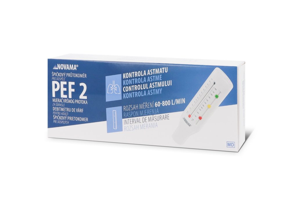 NOVAMA PEF 2 je spoľahlivý prietokomer pre dospelých, ktorý výrazne uľahčuje každodennú liečbu astmy a iných ochorení dýchacích ciest. So širokým rozsahom merania od 60 do 800 l/min umožňuje presné monitorovanie maximálneho výdychového prietoku (PEF). Možnosť nastavenia prietoku zaisťuje individuálne prispôsobenie potrebám každého pacienta.