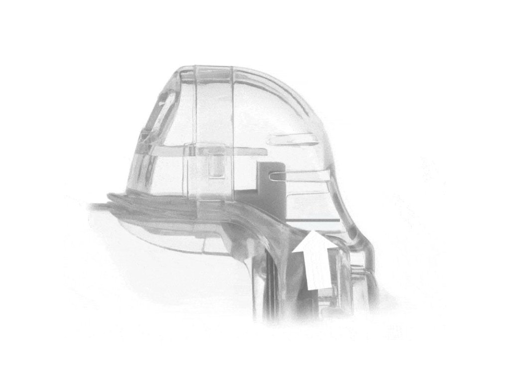 Odstráňte uzáver z komory. Ak používate masku (napríklad pre deti), nasaďte ju pevne na komoru.