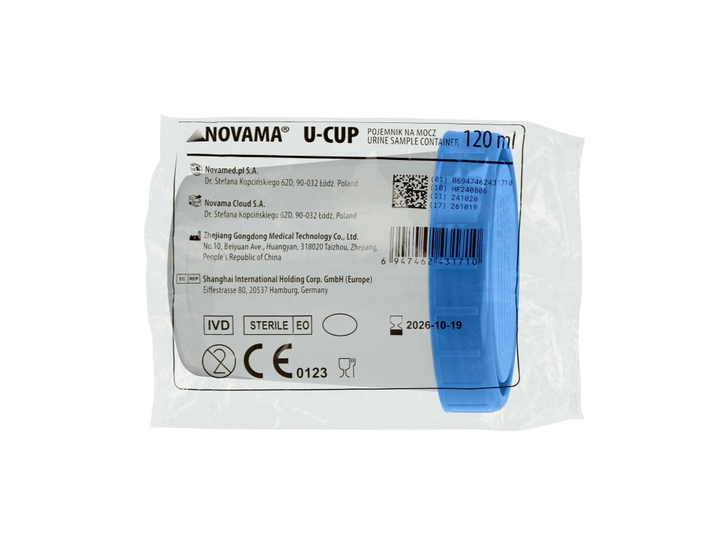 Nádoba NOVAMA U-CUP je sterilný produkt na jedno použitie, ktorý zaisťuje bezpečnosť a hygienu počas skladovania vzoriek. Každá nádoba je umiestnená v samostatnom vrecku, čím sa eliminuje riziko kontaminácie.