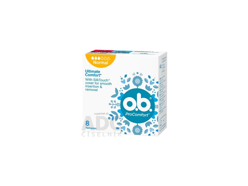 o.b.® ProComfortTM Normal tampony, pre strednú až silnú menštruáciu, maximálne pohodlie* s povrchom SilkTouch®, 8 ks