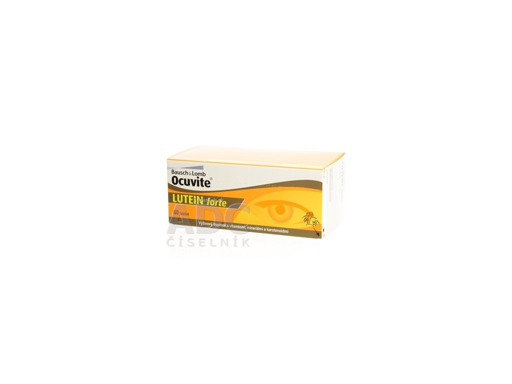 Ocuvite® LUTEIN forte obsahuje vitamín C 60mg, vitamín E 8,8mg, zinok 5mg, selén 20µg, 6mg luteínu a 0,5mg zeaxanthínu.