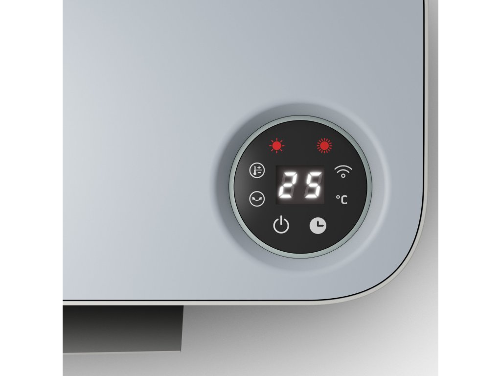 Je k dispozícii v dvoch rôznych farbách, dá sa namontovať na vysokú stenu a vďaka keramickej technológii a automatickej klapke s automatickým výkyvom rozvádza teplo rovnomerne a dlhodobo.