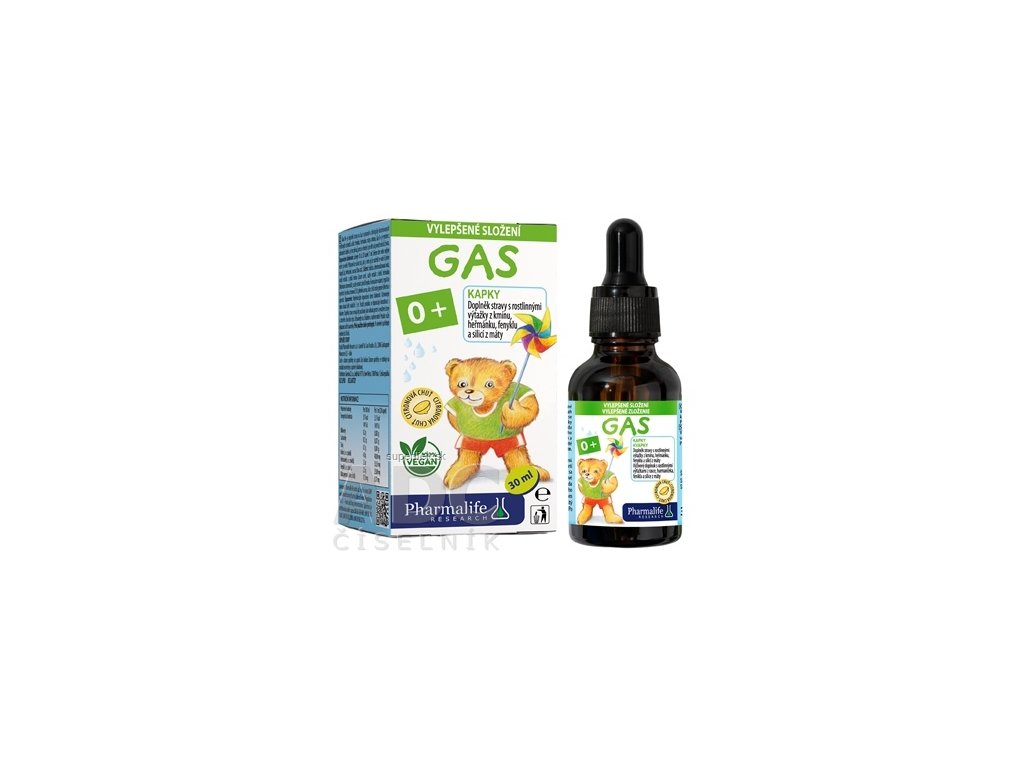 GAS 0+ je doplnok stravy určený pre deti od narodenia do 12 rokov. Tento produkt pomáha prirodzene eliminovať črevné plyny a zmierňovať problémy ako nadúvanie, meteorizmus, kolitída, aerofágia a črevná fermentácia