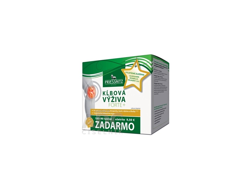 Priessnitz® Kĺbová výživa FORTE + je výživový doplnok v tabletách. Trojmesačná intenzívna kúra. Jednotlivé zložky prispievajú: