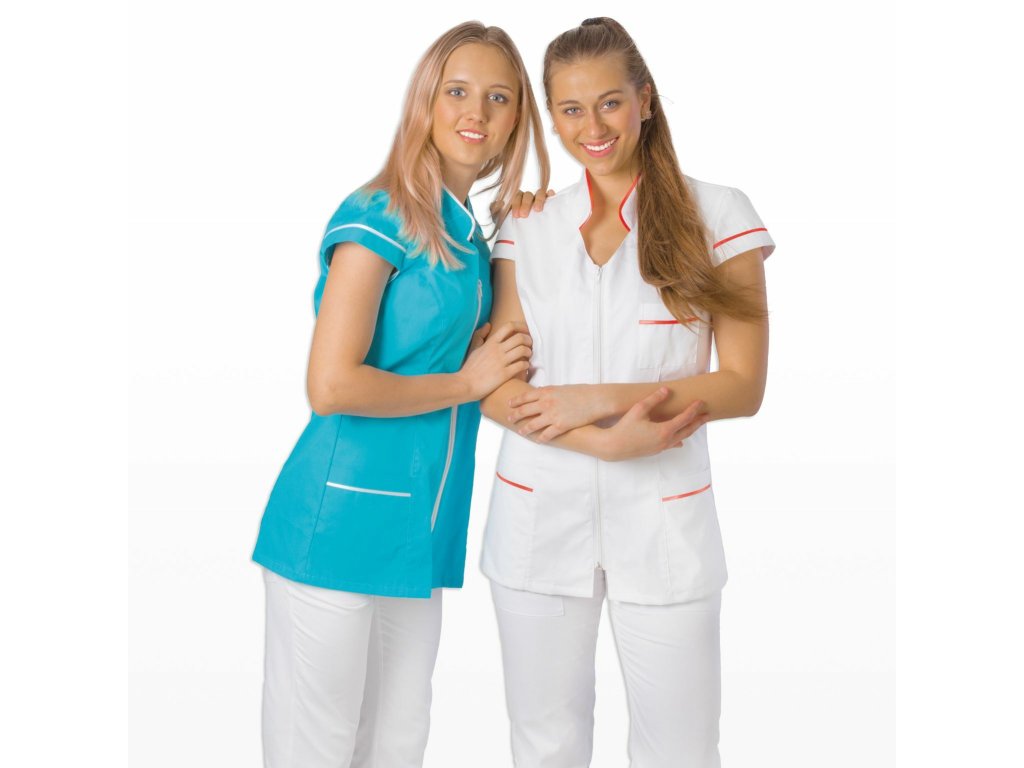 Primastyl Dámska zdravotnícka blúzka ZLATKA s farebným lemom, biela veľ. L