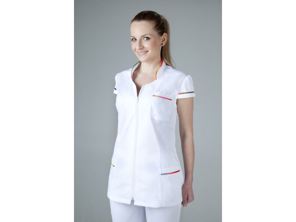 Primastyl Dámska zdravotnícka blúzka ZLATKA s farebným lemom, biela veľ. XXL