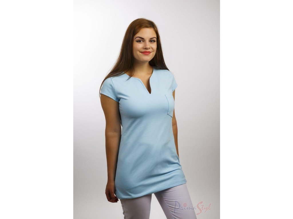 Zdravotnícke tričko s krátkym rukávom je dlhšie, má priliehavý strih a praktické vrecko.