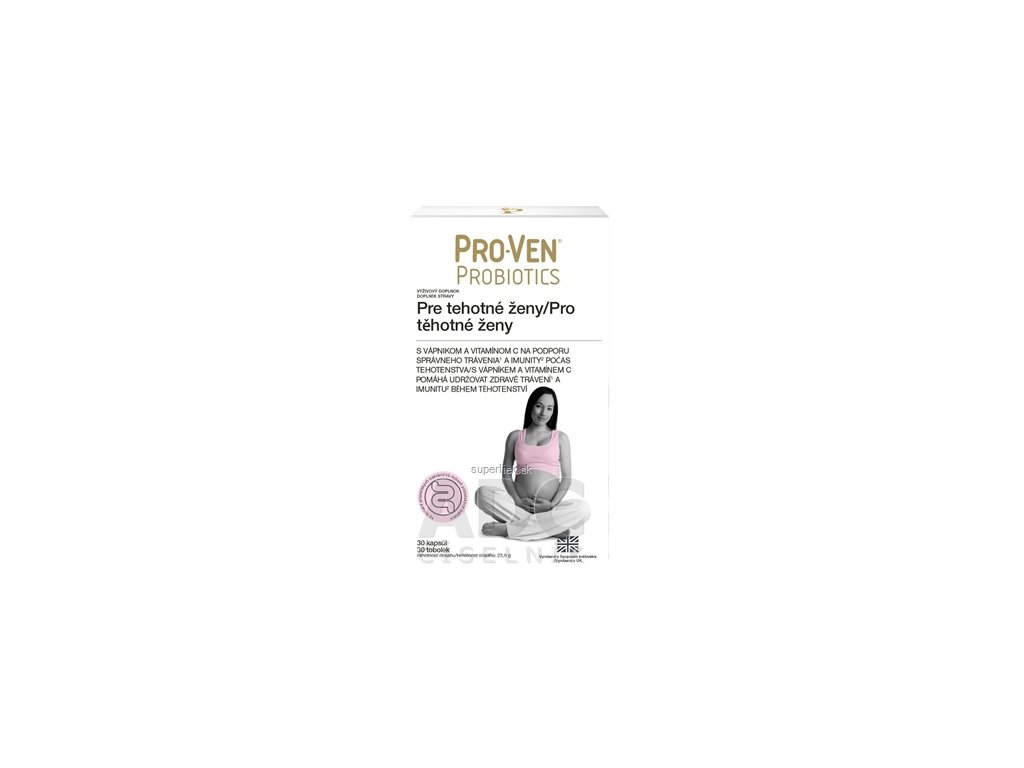 S VÁPNIKOM A VITAMÍNOM C NA PODPORU SPRÁVNEHO TRÁVENIA A IMUNITY POČAS TEHOTENSTVA. Bez alergénnych zložiek. Pro-Ven Pre tehotné ženy obsahuje 10 miliárd Lab4B priateľských baktérií použitých v štúdii Swansea Baby. Môže sa užívat počas tehotenstva i dojčenia na podporu celkového zdravotného stavu matky a dieťaťa.