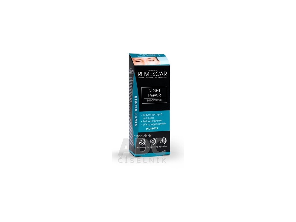 Remescar Nočný obnovujúci očný krém je kozmetický produkt, ktorý redukuje očné vačky, tmavé kruhy pod očami, vejáriky vrások a pozdvihuje ovisnuté viečka počas noci s viditeľnými výsledkami za 28 dní. Vyživuje, spevňuje a hydratuje.