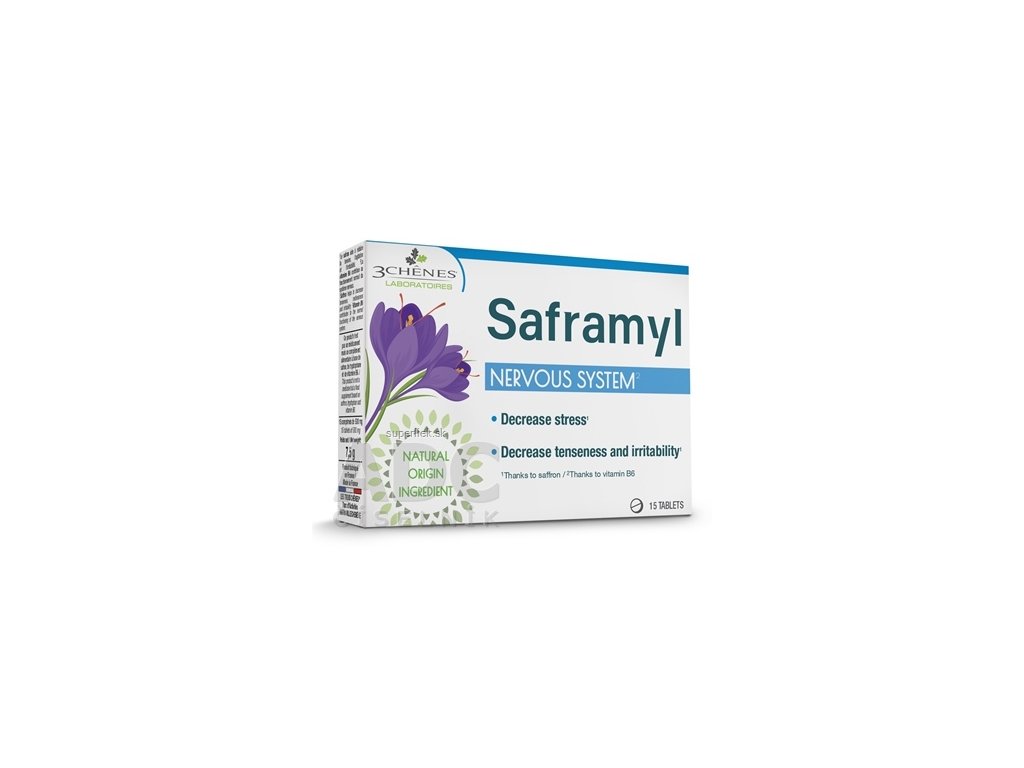 Saframyl pôsobí na neuromediátory v mozgu, ktoré ovplyvňujú našu náladu, a to hneď na troch úrovniach: L-Tryptofán a vitamín B6 pôsobí na produkciu neuromediátorov a Satiereal ® (patentovaná prírodná aktívna zložka získaná zo šafranu) umožňuje zvýšiť ich koncentráciu. Klinicky testovaný účinok extraktu zo šafranu.