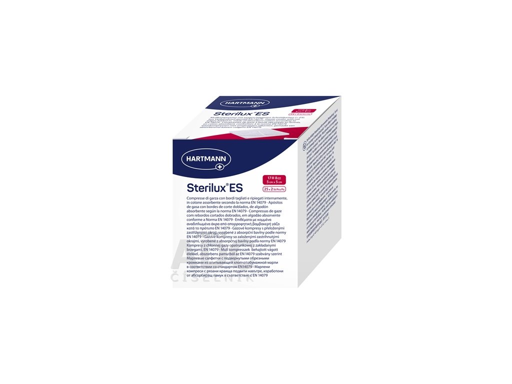 STERILUX ES kompres sterilný so založenými okrajmi 17 vlákien 8 vrstiev (5x5 cm) 25x2 (50 ks)