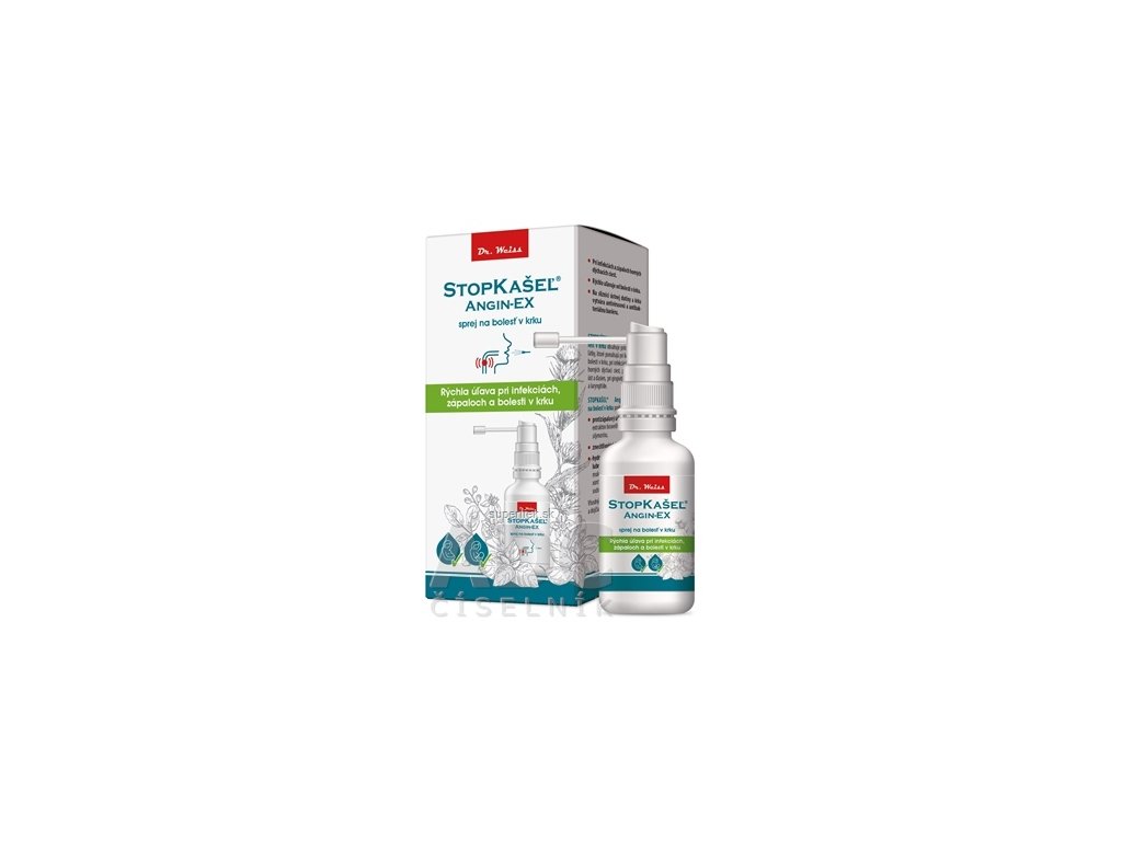 StopKašeľ ANGIN-EX sprej na bolesť v krku je zdravotnícka pomôcka, obsahujúca prírodné účinné látky, ktoré pomáhajú pri kašli a bolesti v krku, pri infekciách a zápaloch horných ciest dýchacích, pri podráždení úst a ďasien, gingivitíde, faryngitíde a laryngitíde.