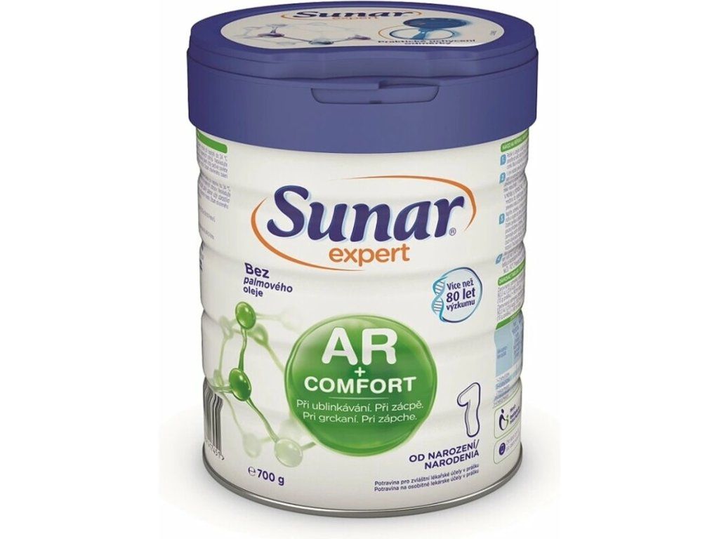 Sunar Expert AR+ Comfort 1 je potravina na zvláštne lekárske účely. Je určený na riadenú diétnu výživu dojčiat od narodenia, ktorí trpia buď drobným grckaním alebo majú zápchu, prípadne sa u nich vyskytujú oba problémy. Navyše obsahuje mliečny tuk, vďaka ktorému je deťmi veľmi dobre prijímaný.