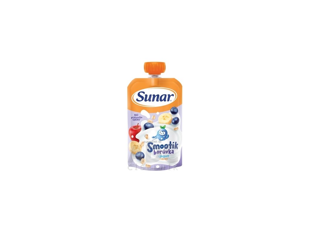 Sunar Smootík čučoriedka, jogurt, ovos 120 g je chutná a výživná ovocná kapsička s jemnou konzistenciou. Kombinácia čučoriedok, smotanového jogurtu a ovsených vločiek je ideálna ako zdravá desiata pre malých objaviteľov. Obsahuje iba prirodzene sa vyskytujúce cukry, bez pridaného cukru a bez konzervantov.