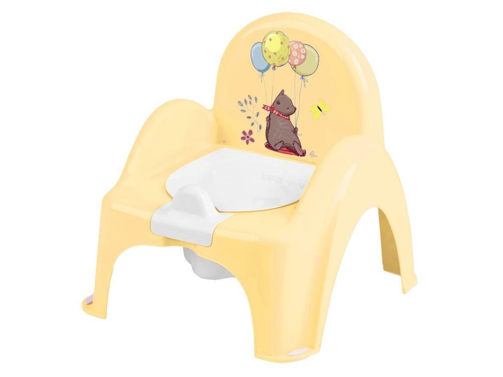 Detský nočník je vyrobený v tvare toaletnej misy so zaklápacou doskou, vďaka čomu má dieťa pocit, že chodí na záchod ako dospelý.
