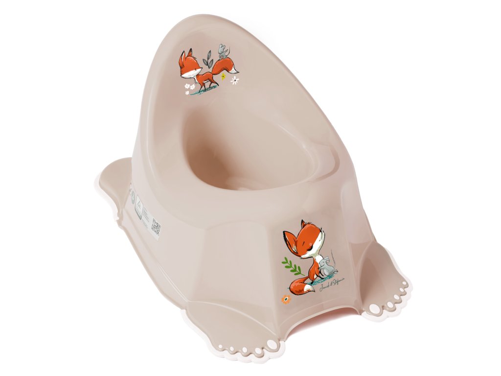 Vďaka svojmu tvaru, vysokej opierke chrbta a širokému sedátku poskytuje deťom pohodlie. Spodná strana nočníka má protišmykovú úpravu - bezpečný.