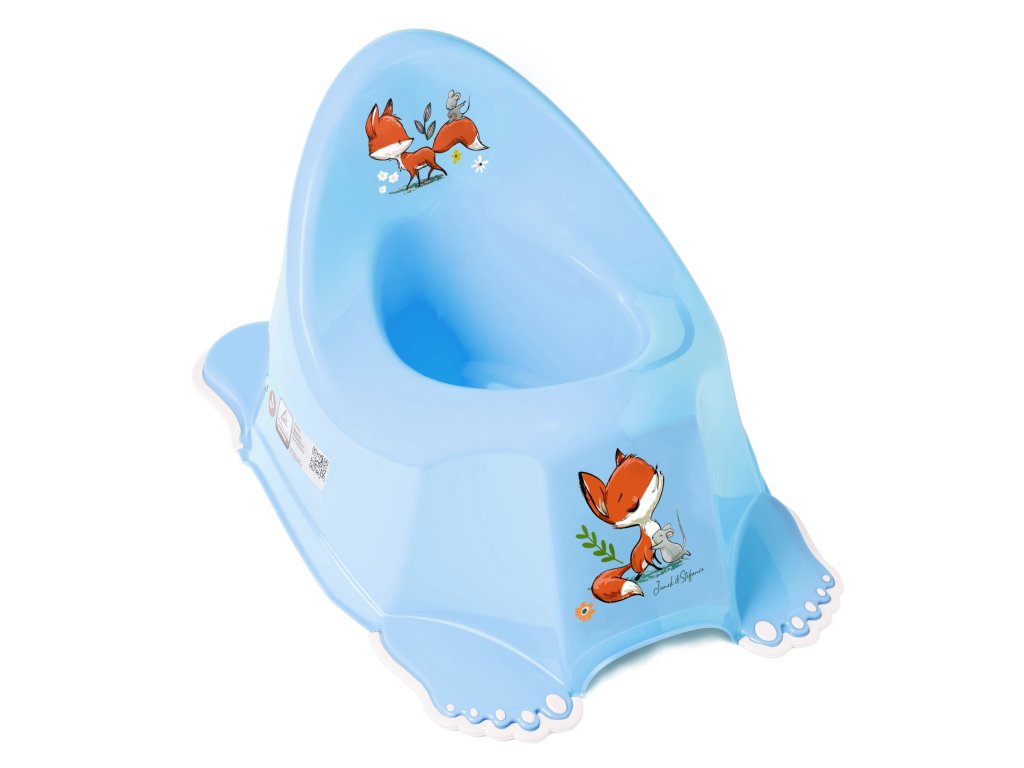 Vďaka svojmu tvaru, vysokej opierke chrbta a širokému sedátku poskytuje deťom pohodlie. Spodná strana nočníka má protišmykovú úpravu - bezpečný.