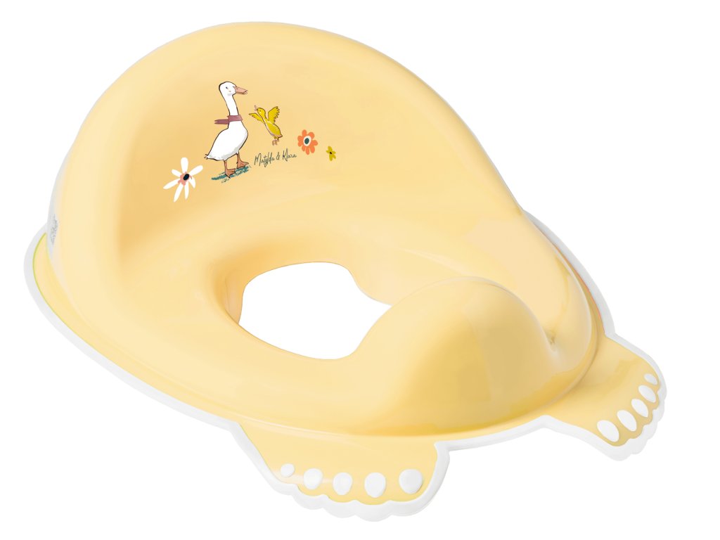 Spodná strana sedátka má protišmykovú úpravu pre väčšie bezpečie vášho dieťaťa. Sedí ku väčšine záchodových dosiek. Pomáha deťom naučiť sa samostatne používať toaletu.