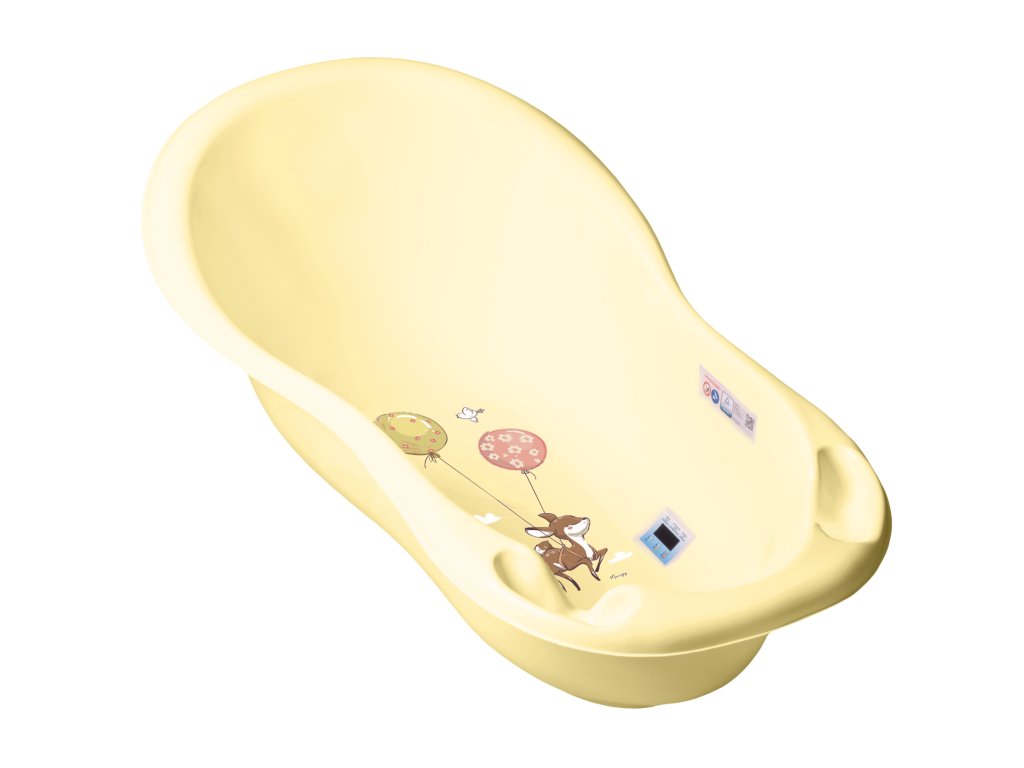 Vhodná pre deti 0-15 mesiacov. Bežný štýl vaničky vyrobený s vysoko kvalitného plastu. Pohodlný tvar dna. Na kraji má nádobky pre odloženie mydla alebo hračiek.