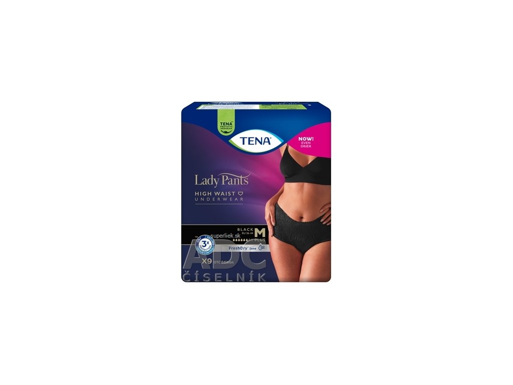 TENA Lady Pants Plus Black M čierne dámske naťahovacie inkontinenčné nohavičky 1x9 ks